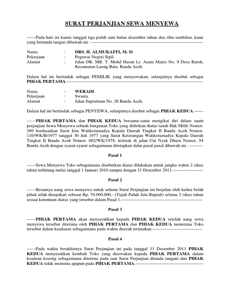 Surat Perjanjian Sewa Menyewa Toko Pdf